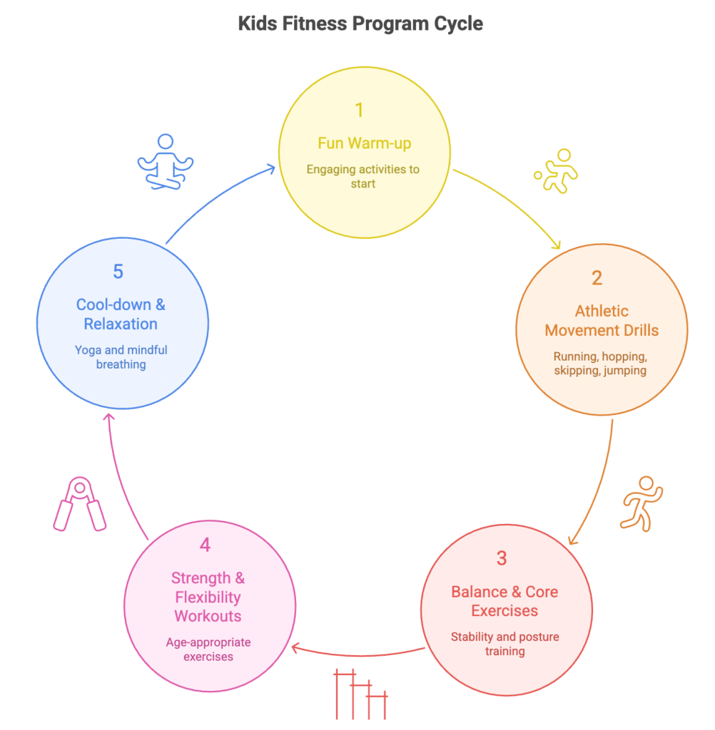 Our Kids Fitness Program is a fun and structured way to help children (ages 4–18) develop strength, balance, agility, and confidence through safe, playful athletic activities.